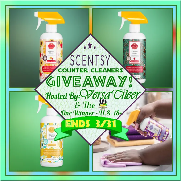 This giveaway/sweepstakes is in no way endorsed, affiliated, or associated with Facebook, Twitter or any other Social Media Networking Site. The giveaway is for 1 Bundle pack of 3 bottles Scentsy Scentsy Counter Clean (7 scents)in choice of three of the following scents (mix &/or match): Squeeze the Day Counter Clean, Sunkissed Citrus Counter Clean, Make a Splash Counter Clean, Scarlet Sunflower Counter Clean, Johnny Appleseed Counter Clean, Daydream Oasis Counter Clean, and Vanillamint Counter Clean. This Giveaway is valid to United States residents only, Entrants must be 18+ years of age to enter. This giveaway event will end at 11:59 PM EST (10:59 PM CST) 03/31/2024. The winner will have 48 hours to email their information back to versatileer at gmail dot com or a new winner will be drawn, you may want to put this email address as safe as it could go to spam. The giveaway is not valid where prohibited! Once a winner is drawn and confirmed, the name will be announced on the Rafflecopter form. Versatileer will be responsible for sending the winners their prizes. Versatileer has not been compensated in any form for this giveaway. By entering you are authorizing us to collect the information on the form below, this information is used only to contact the winner! No purchase necessary, Void where prohibited by law, and the number of eligible entries received determines the odds of winning. Winners are chosen randomly by Rafflecopter through the use of Random-dot-org. More giveaway terms and conditions are listed: HERE. The sponsors are each responsible for shipping of the above prizes. No blog associated with this contest are responsible for prize fulfillment. If you would like to become a sponsor in a giveaway like this please email Jerry Marquardt at versatileer at gmail dot com. If you take an entry you must stay following for the entire contest or you will be disqualified.