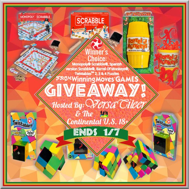 This giveaway/sweepstakes is in no way endorsed, affiliated, or associated with Facebook, Twitter or any other Social Media Networking Site. The giveaway consists of winner’s choice of $40 maximum between the choices of Monopoly® Scrabble®, Scrabble® Spanish Edition, Barrel Of Monkeys®, Twistables™ 2x2x2 Puzzle, Twistables™ 3x3x3 Puzzle & Twistables™ 4x4x4 Puzzle from Winning Moves Games. This Giveaway is valid to Continental United States residents (Lower 48 contiguous states) only, Entrants must be 18+ years of age to enter. This giveaway event will end at 11:59 PM EST (10:59 PM CST) 01/07/2024. The winner will have 48 hours to email their information back to versatileer at gmail dot com or a new winner will be drawn, you may want to put this email address as safe as it could go to spam. The giveaway is not valid where prohibited! Once a winner is drawn and confirmed, the name will be announced on the Rafflecopter form. Winning Moves Games will be responsible for sending the winners their prizes. Versatileer has been compensated to assist in furnishing the prize in this giveaway. By entering you are authorizing us to collect the information on the form below, this information is used only to contact the winner! No purchase necessary, Void where prohibited by law, and the number of eligible entries received determines the odds of winning. Winners are chosen randomly by Rafflecopter through the use of Random-dot-org. More giveaway terms and conditions are listed: HERE. The sponsors are each responsible for shipping of the above prizes. No blog associated with this contest are responsible for prize fulfillment. If you would like to become a sponsor in a giveaway like this please email Jerry Marquardt at versatileer at gmail dot com. If you take an entry you must stay following for the entire contest or you will be disqualified.